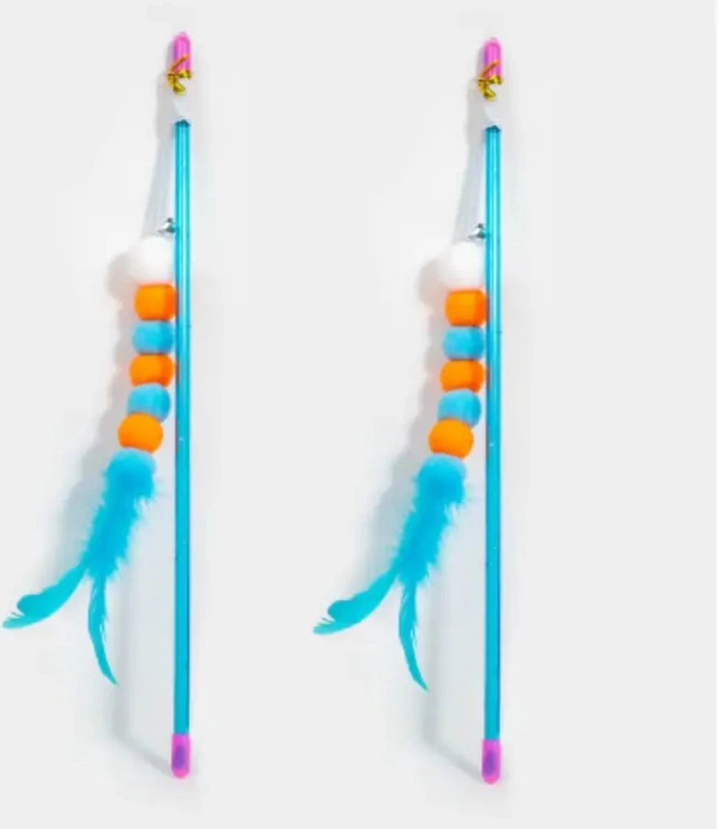 Deze set van 2 speelhengels zorgt voor onbeperkt speelplezier voor zowel u als uw kat. Aan de hengels zit een elastisch koord met daaraan een belletje, een pluche imitatie rups en veren. De felle kleuren, het geluid van het belletje en de bewegingen zorgen ervoor dat dit kattenspeeltje de aandacht van uw kat trekt en deze zijn/haar energie kwijt kan.