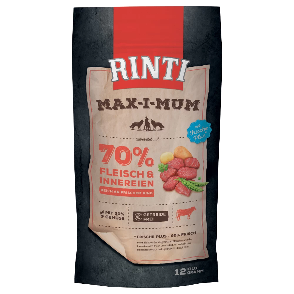 Het absolute maximum aan versheid: met RINTI Maxi-i-mum droogvoer verwen je jouw hond nu met extra versheid, want het is met 65% vers vlees en verse ingwanden bereid. Daardoor wordt de natuurlijke vleessmaak bevorderd en de spijsvertering bij jouw hond ondersteund. Het compleetvoer voor jouw hond heeft door het hoge vleesaandeel een verhoogd vetgehalte en zo een evenwichtige eiwit-/vetverhouding, dat bijdraagt aan een behoedzame vertering, die het organisme niet belast. Honden kunnen dierlijk eiwit het beste verteren. Het totale vleesaandeel bij RINTI Maxi-i-mum hondenvoer kip ligt bij 70% en biedt zo een ideale verzorging met waardevol eiwit. Bovendien is het hoogwaardige droogvoer vrij van graan en daarom zeer goed verdraagbaar en ook voor dieren met voedselintolerantie geschikt. 30% van het voer bestaat uit smakelijke groente, dat essentiΓ«le vitaminen, mineralen en overige voedingsstoffen levert. Door spijsverterinmgsbevorderend biergist en ballaststofrijke vlozaadschillen ondersteunt RINTI Max-i-mum kip een gezonde spijsvertering en draagt zo bij aan het welzijn van jouw dier. Zo overtuigt RINTI Max-i-mum kip: Compleetvoer voor volwassen honden 70% vleesaandeel voor een evenwichtige en een ideale verzorging met dierlijk eiwit Zonder graan: aardappel als hoofd-koolhydraatbron, zeer licht verteerbaar en ook voor dieren met voedselintolerantie geschikt 65% vers vlees en verse ingewanden voor een pittig lekkere smaak en de beste acceptatie Lekkere kip licht verteerbaar en goed verdraagbaar 30% groente als leverancier van belangrijke vitaminen, mineralen en ballastoffen Met biergist en vlozaadschillen ter ondersteuning van de spijsvertering Compleet en evenwichtig: voor een ideaal voedingsstofprofiel Zo overtuigt RINTI Max-i-mum rund: Compleetvoer voor volwassen honden 70% vleesaandeel voor een evenwichtige en een ideale verzorging met dierlijk eiwit Zonder graan: aardappel als hoofd-koolhydraatbron, zeer licht verteerbaar en ook voor dieren met voedselintolerantie geschikt 65% vers vlees en verse ingewanden voor een pittig lekkere smaak en de beste acceptatie Smakelijk rund en kip: licht verteerbaar en goed verdraagbaar 30% groente als leverancier van belangrijke vitaminen, mineralen en ballastoffen Met biergist en vlozaadschillen ter ondersteuning van de spijsvertering Compleet en evenwichtig: voor een ideaal voedingsstofprofiel