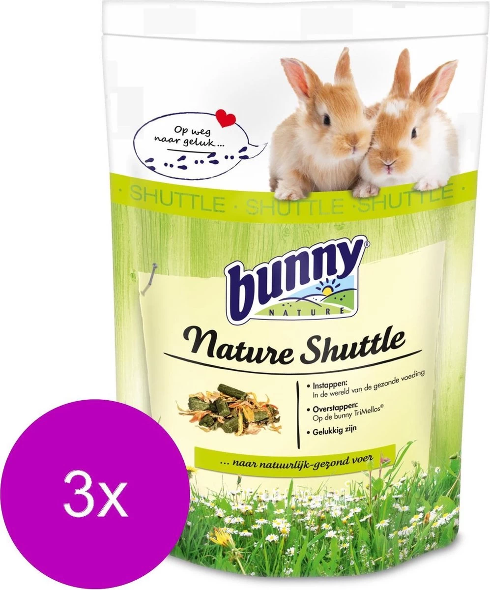Bunny Nature Shuttle Konijn 600 gr Compleet voer voor dwergkonijnen vanaf de leeftijd van 6 maanden. Veel huisdieren krijgen uit onwetendheid voeding die niet op hun soort is afgestemd. Het voer bevat vaak te veel calorieΓ«n en suikers. Bunny Nature Shuttle helpt de dieren om terug over te stappen op een natuurlijke, gezonde en afgestemde voeding. Vul de voerbak met Bunny Nature Shuttle en wacht tot al het voer is opgegeten, vΓ³Γ³r het weer te vullen. Geef dagelijks hoogwaardig bunny hooi en vers, handwarm water. Nadat deze verpakking op is, over gaan op RabbitDream BASIS of HERBS. Waarom overstappen Konijnen zijn van nature uit pure planteneters. Hun hele fysiologie β van de tanden tot de darm β is daarop ingesteld. Toch krijgen jammer genoeg nog te veel konijnen te calorie-/energierijke en suikerhoudende voeding te eten. En als ze voor een langere periode geen afgestemd voer krijgen, duiken al snel diverse ziekten op die met hun voeding te maken hebben. Hele graankorrels, tuinbonen, erwtenvlokken, etc. staan bv. helemaal niet op hun natuurlijk menu. Sommige mixen zien er zo wel gevarieerd en kleurrijk uit, maar toch zijn ze niet altijd even gezond voor onze lievelingsdieren. Dus waarom zouden we hen zo moeten blijven voeren? Overschakelen op een gezond, plantaardig menu is nu zeer makkelijk. Samenstelling aanplant van blijvend grasland (doddegras, zwenkgras, Grote vossenstaart, engels raaigras, roodzwenkgras, veldbeemdgras, kropaar, honinggras, eenjarig beemdgras, wit struisgras, reukgras, kweek, smeel, rietgras, witte klaver, rode klaver, paardebloembladeren, duizendbladkruid, smalle weegbree, karwij, fluitenkruid, moerasspirea, gewone hoornbloem, walstro, heidebloem-ereprijs, heggewikke, smeerwortel, akkervederdistel, hondsdraf, madeliefjes, gamanderereprijs, vrouwenmantel, grote pimpernel, smalbladige wikke, knolsteenbreek, voorjaarsvingerkruid, akkerereprijs, vroegeling, herfstpaardenbloem, rood struisgras, sleutelbloem, kleine klaver), gerst, tarwezemelen, haferzemelen, zonnebloemextractieschroot, wortelpulp, lijnzaadextractieschroot, wortels, pastinaken, lignocellulose, cichoreiwortel, pepermuntblaadjes, aalbesbladeren, goudsbloembloesem, calciumcarbonaat, bierbostel, st. jansbrood, biergist, camillebloesems, inuline Analytische bestanddelen ruw proteΓ―ne 12,7 %, ruwe oliΓ«n en vetten 2,1 %, ruwe celstof 18 %, as 8,5 %, calcium 0,6 %, fosfor 0,4 %, natrium 0,18 % Toevoegingen vitamine A 10.000 IE, vitamine D3 700 IE, vitamine E / alle rac-alpha-tocoferylacetaat 60 mg, koper als koper(II)-sulfaat, pentahydraat 6 mg, jodium als calciumjodaat, hexahydraat 0,9 mg, ijzer als ijzer(II)sulfaat, monohydraat 50 mg, zink als zinkoxide 60 mg, mangaan als mangaan(II)-oxide 40 mg, seleen als natriumseleniet 0,18 mg Stap in de wereld van gezonde voeding. Stap over op Bunny voeding en maak jouw huisdier gelukkig. Inhoud: 600 gr