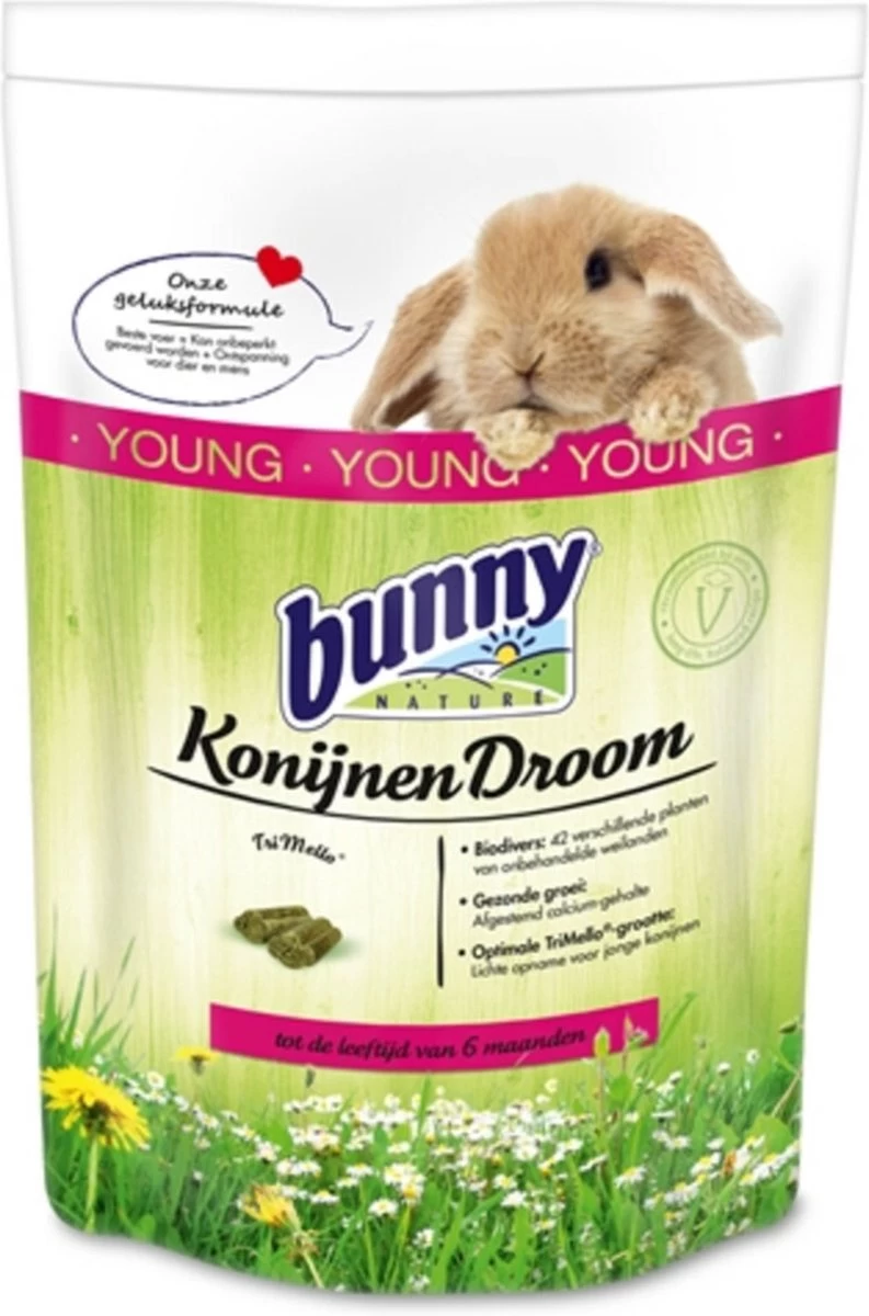 Bunny Nature Konijnendroom Young 1,5 kg Bunny Nature Konijnendroom Young is een volledig diervoeder voor jonge konijnen. De ingrediënten komen van duurzaam bewerkte bedrijven, die zoals bunny respectvol met het milieu omgaan. Dierenvrienden, vaklui en dierenartsen vinden elkaar bij bunny, om zeer gemotiveerd het beste voor het dier te bereiken.