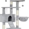 Geef je kattenvriendjes een beetje luxe met onze veelzijdige kattenboom! Dit speelcentrum voor katten heeft meerdere verdiepingen met een massief frame dat bedekt is in zacht, comfortabel pluche. Het is de perfecte plaats voor katten om te krabben, klimmen, zitten, verstoppen en te ontspannen.