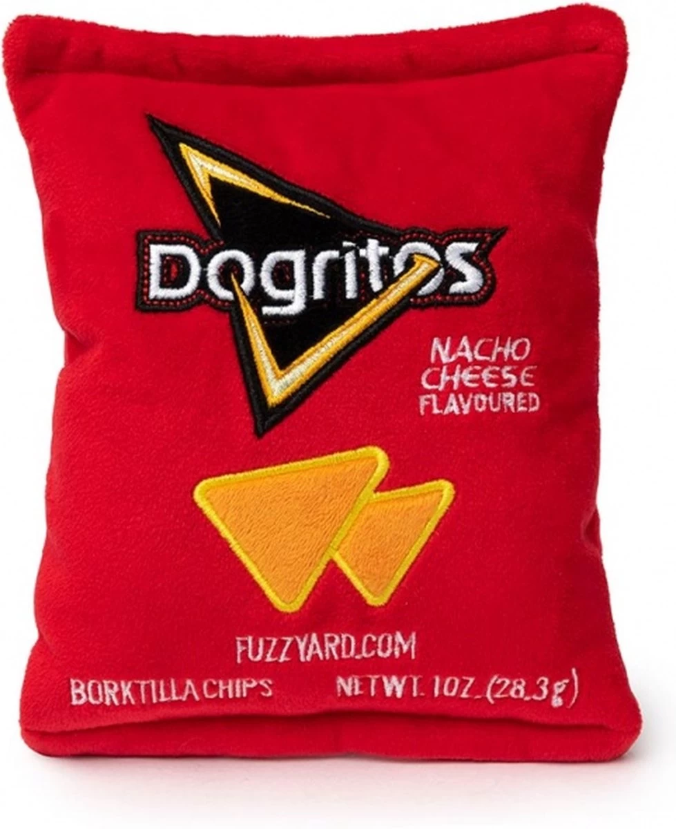 Nu kan de hond ook lekker genieten van een zak chips, dit pluche speeltje bevat namelijk een leuke squeaker voor urenlang speelplezier!