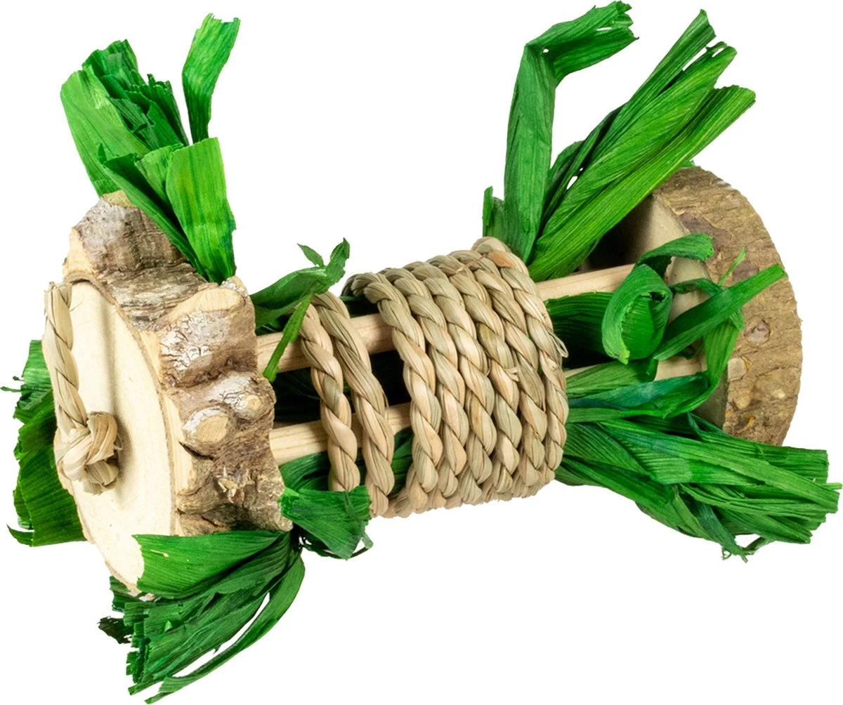 Deze leuke knaagrol vastgebonden met waterhyacinth en maïsbladeren van duvoplus is de ideale accessoire voor in je knaagdierenverblijf. Het gaat verveling tegen, bevordert het natuurlijke knaaginstinct en houdt hun tandjes gezond. De tanden van knaagdieren groeien immers voortdurend. Door het vele knagen houden ze de groei van hun tanden onder controle. Vervaardigd uit kwaliteitshout maakt dit een gezond en niet-te-missen speeltje voor in het verblijf.