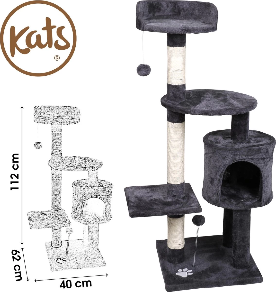 Geef jouw favoriete huisdier iets om te krabben zodat jouw mooie bank overgeslagen wordt. Daarnaast is deze katten krabpaal een uitstekende slaap- en ligplaats. Met een hoogte van 112 cm kan jouw nieuwsgierige kat of poes alles overzien en genieten van een eigen plekje!
