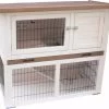 Het Boon wit met grijze houten konijnenhok met ren (twee etages) wordt als bouwpakket geleverd en is eenvoudig te monteren. Het konijnenhok heeft een lade en een nachthok en is EXTRA DIEP, voor nog meer ruimte.