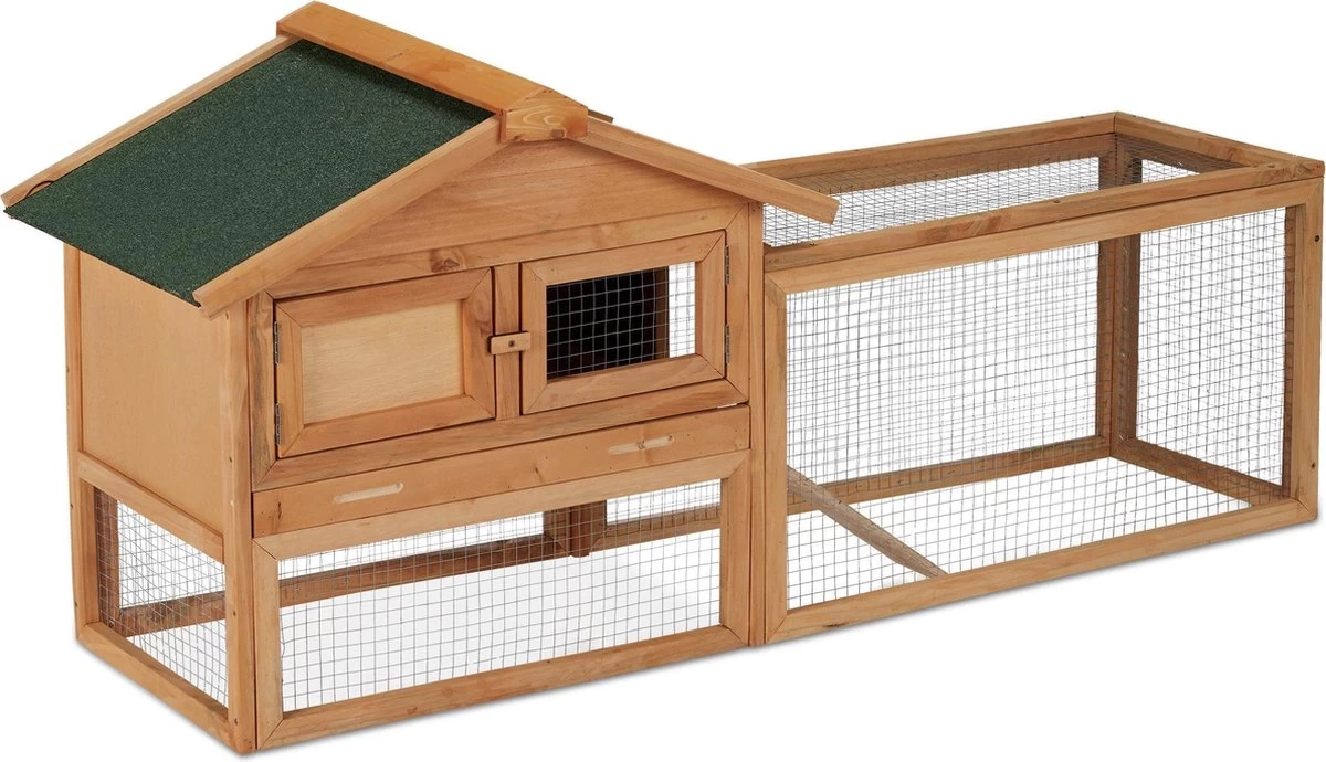 Wil je je knaagdier een fijn huisje in de tuin geven, dan is dit hok met ren een goede keuze. Door de loopplank kunnen hazen, konijnen of caviaβs zelf bepalen, of ze in de ren willen blijven en vers gras willen grazen of liever zichzelf willen terugtrekken in het konijnenhok. Het openslaande dak en de uitneembare lade maken het schoonmaken van het hok met twee verdiepingen eenvoudig.
