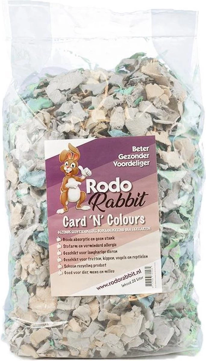 Kleine stukjes eierdoos afkomstig van de overproductie. Dit restproduct zorgt voor een zachte en luchtige bodembedekker. Door de verschillende soorten eierdozen een kleurrijk geheel.
