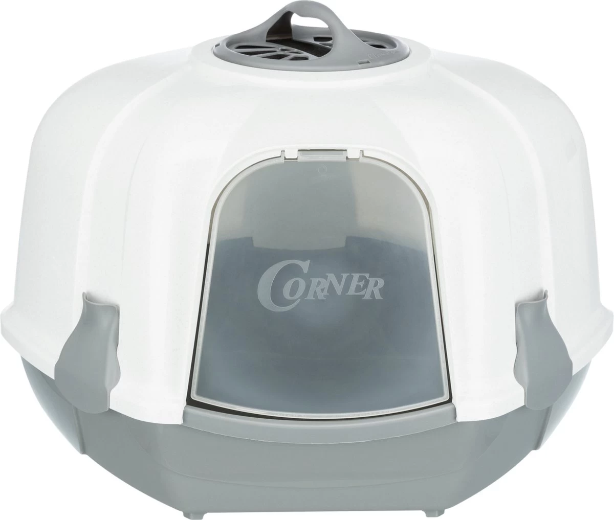 De Kattenbak Maro Hoekmodel met een kap zodat de kattenbakvulling minder snel kan ontsnappen. Bij deze kattenbak word een schepje geleverd. Met filter van actieve koolstof en easy-click sluitingen. De bak is gemaakt van kunststof.