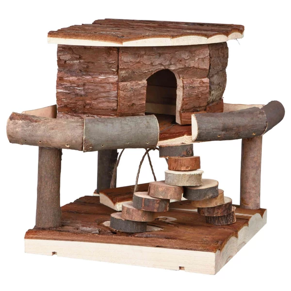 Trixie Knaagdierhuis Ida β Kooi Accessoire β 19x20x19 cm direct bestellen in onze webshop! huis afneembaar , met schommel en trap , schorshout Wij hechten veel waarde aan de gezondheid van uw dier. Vandaar dat onze Natural Living producten uit naaldhoutsoorten zonder harskanalen bestaan. Hars is giftig voor dieren. De door ons gebruikte houtsoorten produceren geen hars en worden bovendien langdurig gedroogd. De lijm die wij gebruiken is eveneens niet giftig voor dieren en bestaat uit een mengsel van rubber dan wel cellulose.. Alle Trixie voor uw Knaagdier uit voorraad leverbaar!