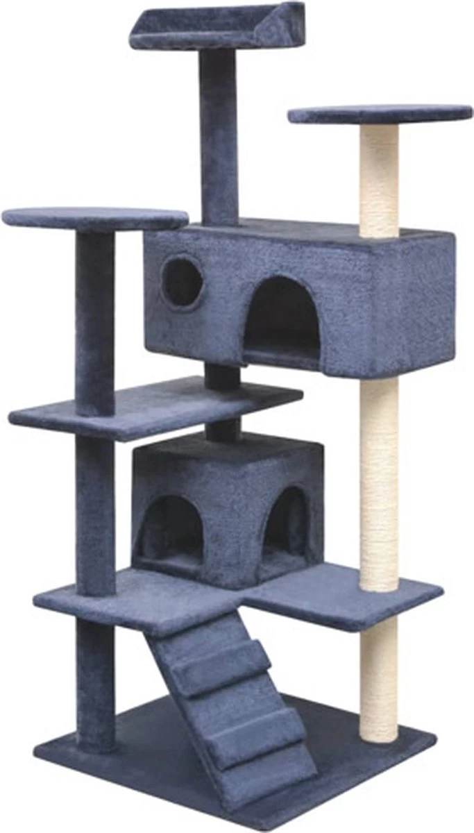 Je kattenvriendjes kunnen hun klauwen scherper maken met de krabpalen die omwikkeld zijn in sisaltouw, dit zorgt voor een gezonde uitlaatklep voor de krablust van je kat. Ze zullen het ook heerlijk vinden om achter elkaar aan te rennen terwijl ze van en op dit leuke speelcentrum springen. Wanneer ze genoeg gespeeld hebben kunnen je kleine vriendjes uitrusten op de bovenste platformen, waar ze een beter uitzicht hebben. Ze kunnen zich ook verschuilen in de knusse huisjes om een dutje te doen.