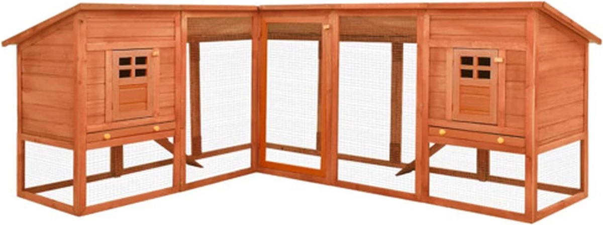 Het konijnenverblijf heeft een uitgebreid ontwerp met twee huizen en een zeer grote ren met gegalvaniseerd draadgaas om je dieren in de gaten te houden en onverwachte ongelukken te voorkomen. Het zorgt er ook voor dat ze voldoende frisse lucht krijgen. Het hok is gemaakt van massief vurenhout, waardoor het stabiel en duurzaam is. Ook is het kanteldak bekleed met waterafstotende stof, waardoor de binnenkant droog blijft. De anti-sliphelling leidt van de benedenverdieping naar de bovenverdieping.