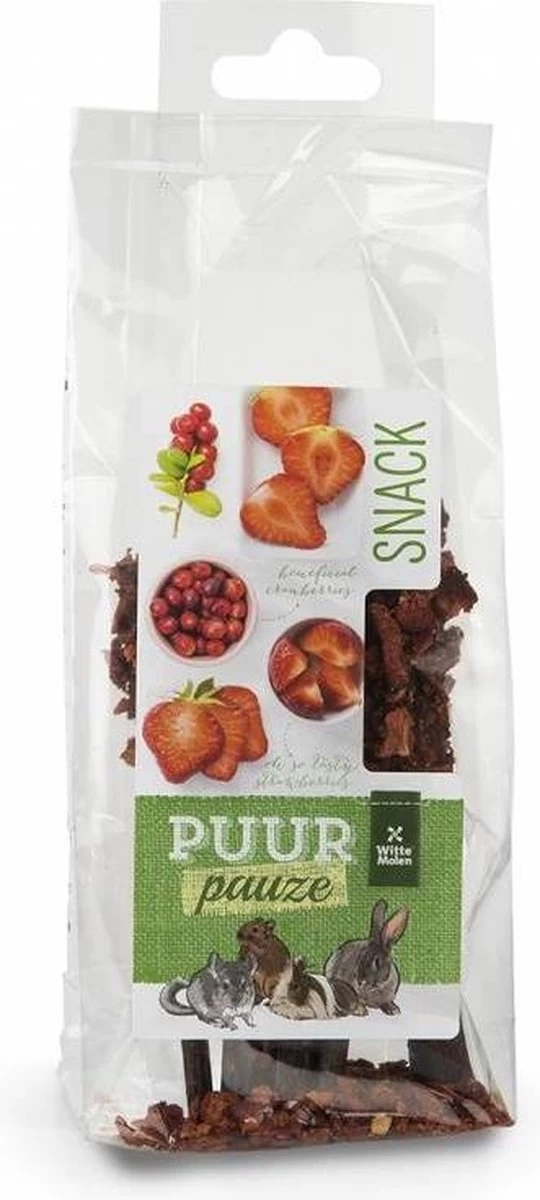 Puur pauze knabbelhoutjes aardbei van Witte Molen is de ideale bezigheid voor uw geliefde huisdier en bevat geen kunstmatige kleurstoffen en bewaarmiddelen. Deze verantwoorde snack ondersteunt de algemene gezondheid en bestaat uit 100% natuurlijke ingrediΓ«nten. Mag tot 25% van de dagelijkse voeding omvatten.
