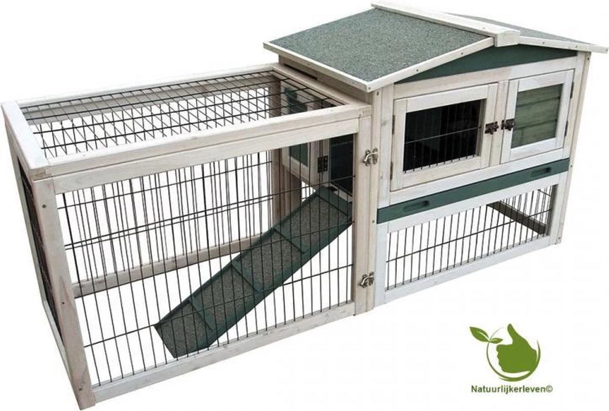 Het konijnenhok Lambert met ruime uitloopren.